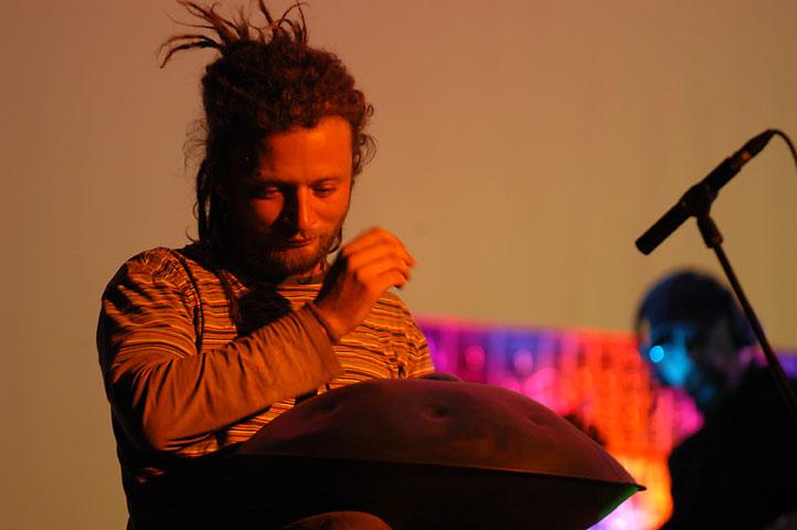A terem 7.30 körül még majdnem üres. Néhányan már megérkeztek és elfoglalták a helyüket. Míg a fotózás rendjével kapcsolatos információkra várakozom, leülök egy székre az első sorban és csodálva nézegetem a színpadon berendezett hangszerparkot. Minden analóg. Semmi kompjúter.