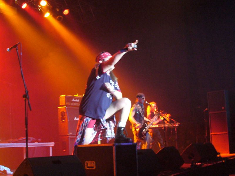Lassan már tiszteletbeli kabalaként mutogatott megkötözött, őrült bábujával, aztán fergeteges headbange-et produkálva rockról és rollról átúsztunk egy hasonló korba, csak éppen erősen metálos irányban. Majd csaknem másfél óra hajrázás és gitártépés után, egy balladai Fear of the Darkkal más vizekre evezve, áttértünk a balhéfőnök Guns’ tributje, tiszteletem- Hollywood Rose-ra, teljesen tuti Axl Rose-zal, és valóban az igazit döntögető show-val. Csapó, váltás.