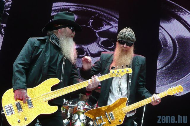 A Mystery Gang volt az előzenekar, sajnos lemaradtam róluk, pedig állítólag ilyen nagy színpadon sem szóltak rosszul. A ZZ Top fél 9 körül kezdett, mégpedig az Under Pressure című számukkal. Nem nagyon vitték túlzásba a színpadképet, a dob állati jól nézett ki halálfejekkel díszítve, ezen kívül 3 ledfal kivetítőként, meg két világító mikrofonállvány, valamint 3-3 kocka a hegyénél összeillesztve a dob két oldalán. A zenéé volt a főszerep, mint általában az összes ZZ Top koncerten. A két szakállas hozta amit vártunk, kemény feszes bluest tálaltak nekünk. Dusty Hill az elmaradhatatlan kalapban, Billy Gibson a szokásos rojtos sapkájában nyomta.