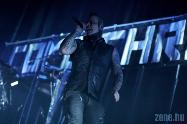 Prekoncepcióktól szinte teljesen mentesen kóstolhattam bele az előzenekar, a norvég gyökerekkel rendelkező, de rajtaütésszerű támadásait immáron amerikai főhadiszállásról indító Combichrist produkciójába, hiszen eleddig megjelent 4 stúdióalbumukról egy kezemen meg tudom számolni, hány számot hallottam a keddi koncertet megelőzően. Két, beismerten felszínes megállapítást tettem virtuális tarsolyomba velük kapcsolatban. Az egyik, hogy élőben kategóriákkal jobbak, mint CD-ről. A másik, hogy habár átütő erejű és a szürrealizmus határát súroló fellépésük indokolttá teszi megjelenésüket a Rammstein előzenekaraként, számomra lényegesen szolidabb élményt jelentettek, mint hajdanán a hasonló apropóból ide látogató Apocalyptica. Nem voltak rosszak, a célnak tökéletesen megfeleltek, de másnap nem éreztem indíttatást arra, hogy videomegosztó portálokon koncertfelvételeiket vadásszam, vagy megkíséreljem korábbi albumaik valamelyikét fellelni a lemezboltokban. Mindenképpen dicséretükre szól ugyanakkor, hogy pontosan annyit játszottak, amennyi egy előzenekarnak megbocsátható.