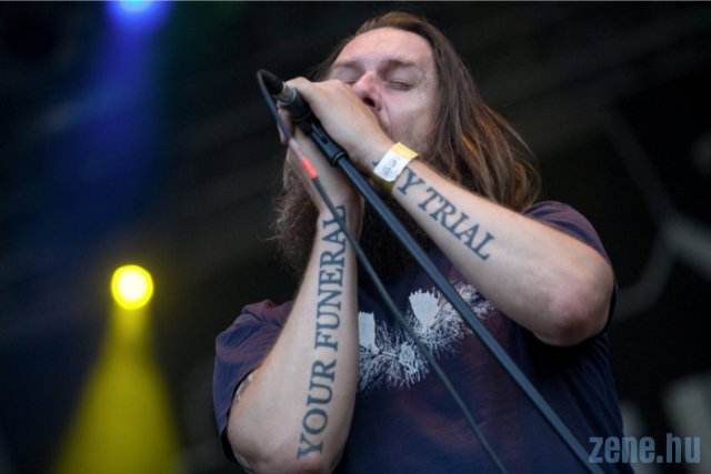 A Pop-rock helyszínt elhagyva irányba vettem a Metál szentélyt, amin akkor éppen a svéd The Haunted zakatoló, brutális metálja szólt - nem is rosszul. Ott is ragadtam, és megállapítottam, hogy konkrétan mindent kisajtoltak a színpadon, és annak szélén elhelyezett hangládákból. Dübörgött, porzott az elemvény előtti terület, megkezdődött a hangolás a térdzoknis bandára.