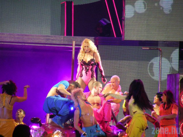 Az az ováció és az a látvány, ami következett ezután, leírhatatlan! Az utóbbi évekhez képest Britney ragyogó formában volt, de persze rajta is látszik, hogy szült két gyermeket. Szerintem a Toxic idején volt igazán bomba formában. De Britney ma is szexi, igazán ízlésesen kerek, talán ha 5 kilóval több fénykoránál. A hat táncosnőt úgy válogatták mellé, hogy a vizuál esztétikai összhang ne szenvedjen csorbát: icipici husi volt mindegyiken, pont csak annyi, hogy ne lehessen a „deszka” jelzővel illetni őket. A tíz táncos férfi vicces lett volna mondjuk izléses sörhassal, de erről szó sem volt, kemények voltak mint, mint a vídia.