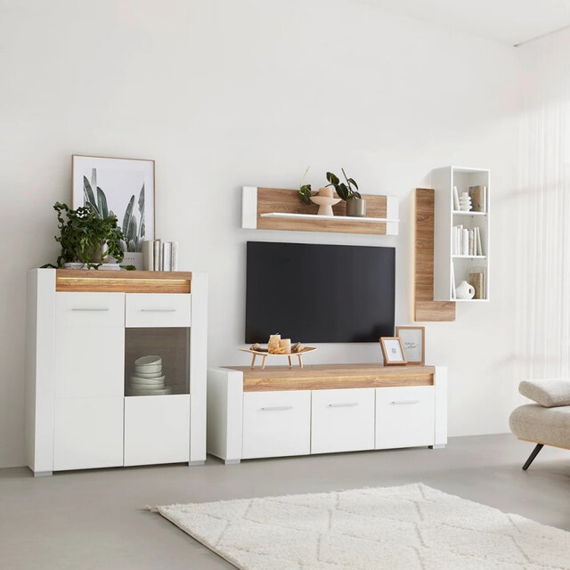 A fiókos, ajtóval záródó szekrényekkel kiegészülő vagy polcos modellekben a tárolás praktikusan megoldható. A vitrines elemben dísztárgyaink ízlésesen kerülhetnek elhelyezésre, míg a médiaállványon lévő televízió pont olyan magasságú, hogy kényelmesen nézhetjük a műsort a kanapéról.