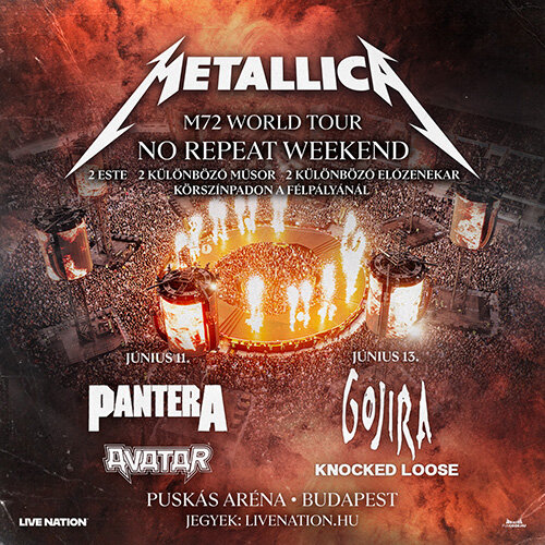 A hagyományoknak megfelelően a Metallica az M72 World Tour 2026-os útvonalába is elhelyezett No Repeat Weekend fellépéseket, azaz az adott városban két koncertet adnak, a két estére teljesen különböző programmal és előzenekarokkal készülnek, így mind a két buli páratlan élmény lesz. Budapesten június 11-én a Pantera és az Avatar, 13-án pedig a Gojira és a Knocked Loose lesznek a Metallica vendégei.