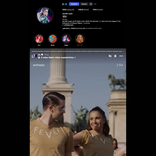 Valóra vált, amiben titkon minden résztvevő reménykedett: Jennifer Lopez saját hivatalos Facebook-oldalán osztotta meg a budapesti flashmobról készült videót, amelyen közel 200 magyar táncol együtt a világsztár egyik legnagyobb slágerére a Hősök terén. A résztvevők között ott táncolt Kollő Babett is, aki maga is nagy JLO-rajongóként lelkesen csatlakozott a közös élményhez.Az JLO bejegyzése több mint 310 millió követőhöz jutott el,(insta-fb) ezzel Magyarország reflektorfénybe került, és büszkén mutathatta meg, hogyan ünnepli szívből, stílusosan és szenvedéllyel a popkultúra királynőjét.