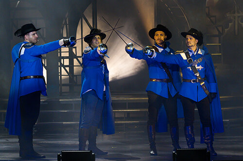 A muskétások kalandjai Szente Vajk rendező vadonatúj feldolgozásában nem véletlenül ragadták magukkal a közönséget. Rákay Tamás nagyszabású díszlete Madarász „Madár” János ámulatba ejtő animációival és világítástervével, a Kovács Yvette Alida csodaszép, 17. századi, mégis mai hangulatú jelmezeit viselő, Túri Lajos Péter koreográfiája szerint lépő rengeteg táncos, az Erkel Színház Musical Ensemble tagjai, statiszták és szereplők által benépesítve idézi hazánk legnagyobb színpadára Dumas ikonikus regényének világát. Károly Katalin zenei vezető és Drucker Péter karmester a Szabadtéri Játékok kiváló zenekarával kelti életre a musical hol lírai, hol rockos dallamait. A főszerepekben országosan elismert színművészek kápráztatják el a közönséget: Ember Márk, Feke Pál, Varga-Járó Sára, Koltai-Nagy Balázs, Brasch Bence, Veréb Tamás, Kovács Gyopár, Csobot Adél, Dino Benjamin, Borsi-Balogh Máté, Fehér Tibor, Poroszlay Kristóf, Nagy Sándor, Szegezdi Róbert, Borsos Beáta, Isaac Gallagher formálja meg a híres muskétásokat, szövetségeseiket és ellenlábasaikat.