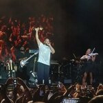 Amire viszont még sokáig emlékezni fogunk, az a Men In Black előadása volt. Hosszasan ment egy figyelmeztetés, angolul és magyarul is, hogy maradjon mindenki ülve(?)... Aztán támadtak az UFO-k és tényleg megjelent egy UFO a színpad felett, világító drónok formájában. Szerencsére megérkeztek a Feketeruhások, elképesztően sokan - magyar ügynökökkel, azaz táncosok lányokkal egészítették ki a csapatot. Ez a rengeteg ember együtt adta elő a klipből ismert, szintén legendás táncot, és nagy szerencsénk volt, mert a dal végén J ügynök elővette az emléktörlőt, de végül nem sütötte el...