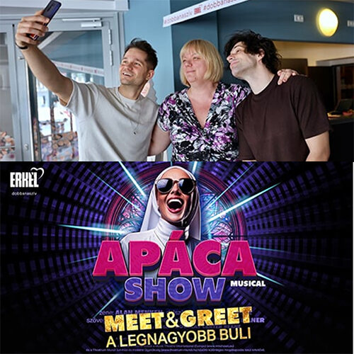 Ősszel érkezik majd a legnagyobb buli az Apáca Show szereplőivel. 2025. október 30-án 19:00-21:00 óra között a közönség egy exkluzív Meet&Greet keretében találkozhat a produkció művészeivel, amelyet fogadás is kísér, ahol találkozhatunk Peller Annával, Náray Erikával, Feke Pállal, Brasch Bencével, Kovács Gyopárral, Vágó Zsuzsival, Papadimitriu Athinával, Cseh Dávid Péterrel, Tóth Angelikával és Braga Nikitával. Lesz éneklés, beszélgetés, evés-ivás és felelevenedik a szereposztás-bejelentőből megismert bulihelyszín is. A nem mindennapi bulira már jegyek is kaphatók.