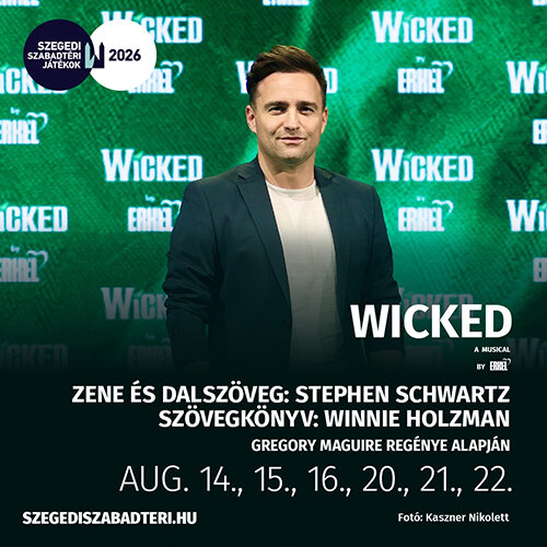 Izgalmakban, lenyűgöző látványban és fordulatokban, káprázatos dalokban és elgondolkodtató pillanatokban tehát nem lesz hiány a Szente Vajk rendezésében készülő Wicked, a musicalben, amelyet augusztus 14-én, 15-én, 16-án, 20-án, 21-én és 22-én láthatnak első magyar nézői, az Erkel Színház produkciójában, a Szegedi Szabadtéri Játékokon.