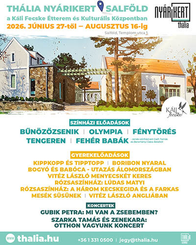 A Káli-medence egyik legkedvesebb kulturális találkozóhelye, a salföldi Káli Fecske Étterem és Kulturális Központ idén nyáron ismét otthont ad a Thália Színház nyári játszóhelyének. A Thália Nyárikert az elmúlt években olyan biztos ponttá vált, amelyre jóleső várakozással tekintünk – és amely most, a korábbi sikerek nyomán, újra megtölti élettel a nyári estéket.