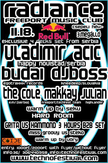 November 18-án a Techfest Team egy új party sorozatot indít RADIANCE néven. Ezen sorozat megszületésének apropójából nem mindennapi Line Up-al kedveskednek a szervezők.