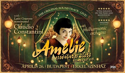 Amélie Csodálatos Élete az ikonikus film és a hozzá tartozó tökéletes zene, amelyet annak idején Yann Tiersen álmodott meg. Magyarországon az Amélie rajongók tízezrei több alkalommal követelték már, hogy élőben is részesei lehessenek egy filmzenei estnek, ahol az eredeti zenemű hallható, de egészen 2025-ig kell várniuk, hogy ez meg is történjen. A zeneszerző - bár 3 alkalommal is adott már koncertet Budapesten - sajnos egyszer sem azokkal a dallamokkal örvendeztette meg őket, amelyeket igazából szerettek volna hallani. Éppen ezért Claudio Constanini Grammy Díjra jelölt zongora és harmonika művész gondolt egy nagyot és szimfonikus zenekarával végre létrehozta azt produkciót, amely igazán egyedi lett és amelyre mindannyian vágytunk. A több, mint másfél órás koncerten újra átélhetjük Amélie Csodálatos világát és – természetesen egy színésznő által -, de maga Amélie is megjelenik az esten, hogy még jobban úgy érezzük a film és a filmzenei est részesei lehetünk.