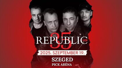 A REPUBLIC zenekar ebben az évben februárban ünnepelte 35. születésnapját. A jeles jubileum kapcsán az MVM Dome után most Szegedre egy közös ünneplésre hívják a közönséget 2025. szeptember 19-én, a Pick Arénába! Születésnapi nagykoncertjükön felcsendülnek majd az olyan nagy slágereik, mint a Repül a bálna, a Szeretni valakit valamiért, az Engedj közelebb, a Ha itt lennél velem, A 67-es út, Kék és narancssárga, Szállj el kismadár…, hogy csak néhányat említsünk. De hallhatóak lesznek olyan új slágerek is, mint a Rajzoljunk álmokat, az Élni jó, az Odavisz a szél, a Balatoni lányok, valamint egy vadonatúj, hivatalosan még meg sem jelent, a Ki van a házban című dal.