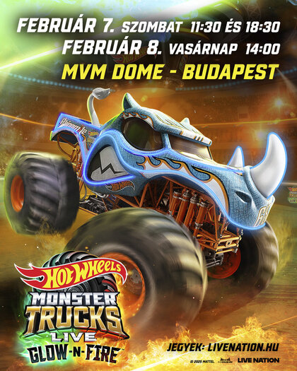 Az idei Pollstar Év Családi Show díj győztese a Hot Wheels Monster Trucks Live™ Glow-N-Fire show 2026-ban tovább fokozza az izgalmakat. Az eredeti Hot Wheels Monster Trucks járgányok turnéja egy teljesen új járgány bemutatkozásával folytatódik: megérkezik Rhinomite, – a dinamit-orrszarvú tematikájú járgány. A kihívások elé rohanva, Rhinomite berobban az arénába, hogy elpusztítsa a versenytársakat. Ezen az előadáson a közönségnek több izgalmas és új élményben része lehet: tátott szájjal bámulhatja a Hot Wheels szörnyverdák még soha nem látott mutatványait, ahogy az FMX-versenyzők vadonatúj szaltóit is! Még forróbb hangulat és még több akció! A Hot Wheels elhozza a rajongóknak az eddigi legnagyobb Monster Trucks show-t Budapestre, az MVM Dome-ba február 7-én és 8-án!