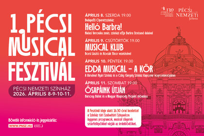 2026 tavaszán történelmi pillanathoz érkezik Pécs kulturális élete: első alkalommal kerül megrendezésre az I. Pécsi Musical Fesztivál, amely négy napon át a musical műfaj legjavát hozza el a közönség számára. Látványos, nagyszabású előadások, világszínvonalú énekesek, lenyűgöző színpadi megoldások és ikonikus dalok várják mindazokat, akik szeretik a zenés színház varázsát. A Nagyszínház falai között esténként igazi színházi ünnep bontakozik ki – érzelemmel, energiával és felejthetetlen pillanatokkal. A fesztivál célja, hogy a musical műfaj sokszínűségét és erejét méltó módon ünnepelje, miközben különleges találkozási pontot teremt a művészek és a közönség számára.