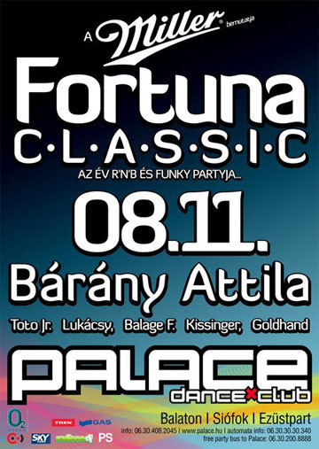 Egy felejthetetlen hangulatú partira kerül sor szombaton a siófoki Palace-ban. Bárány Attilának köszönhetően az év funky és r'n'b buliján vehetsz részt, ha ellátogatsz az idei Fortuna Classic Party-ra.