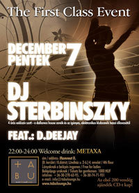 Több egymást követő telt házas buli után Sterbinszky november második péntekjén ismét ellátogatott a Mammut II. 4. emeletén található Tabuba, ahol újra óriási siker és egy fergeteges buli kerekedett Sterby fellépéséből. Az igényes elektronikus tánczenék partisorozata folytatódik, a következő dátum: december 7. péntek!
