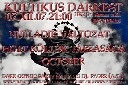 2007. december 7-én a Kultiplex ad otthont egy igazi dark-wave-alterock estnek. A Nulladik Változat, a Holt Költők Társasága és az October zenekarok neve már nem ismeretlen a hazai underground életben. Mindhárom csapat zenéje hordoz egyedi stílusjegyeket, de nem vitatható egyiknél sem a 80-as évek dark-wave hatása. Így ezt a három zenekart egy éjszaka megnézni különleges élményt nyújt majd a stílus elkötelezetteinek.