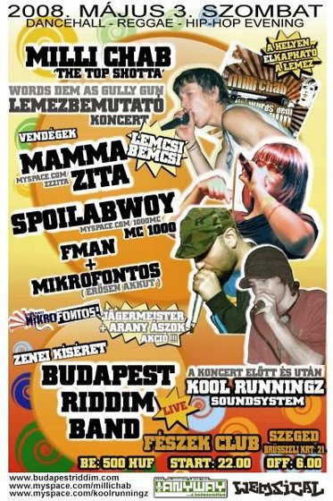 Vendégek: Mamma Zita; Spoilabwoy Mc1000, FMAN + Mikrofontos (Erősen Akkut) - Élőzenés kiséret: Budapest Riddim Band - Előtte, utána: Kool Runingz Sound System