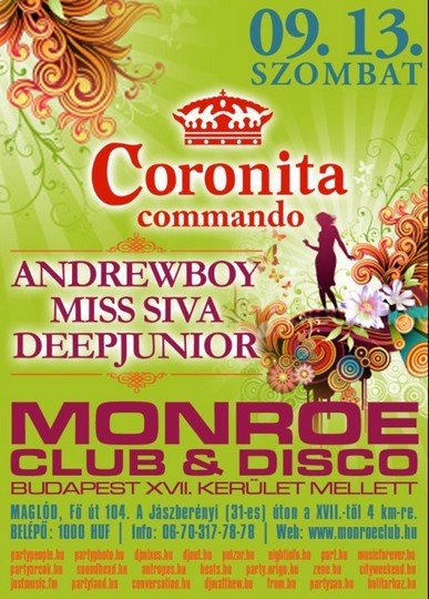 Egy éjszaka a Coronitával. Andrewboy (Coronita), Miss Siva (Coronita) és DeepJunior (Coronita, Monroe) a leghúzósabb coronitás slágerekkel pakolta tele lemeztáskáját, hogy ismét egy feledhetetlen partyn bulizhassunk együtt! A 3 ceremóniamester 7 órán keresztül, megállás nélkül gondoskodik arról, hogy a tánc és a buli a legforrób legyen.