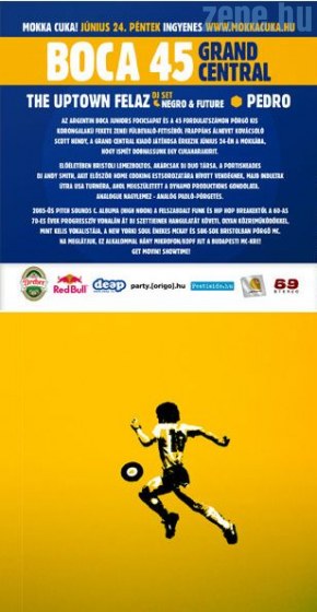 A Boca 45 mellett hazai részről Pedro és az Uptown Felaz alkotják az aznap esti csapatot a Mokka Cuka "gyepén", ahol a kísérő vizuál is a futball körül forog majd.